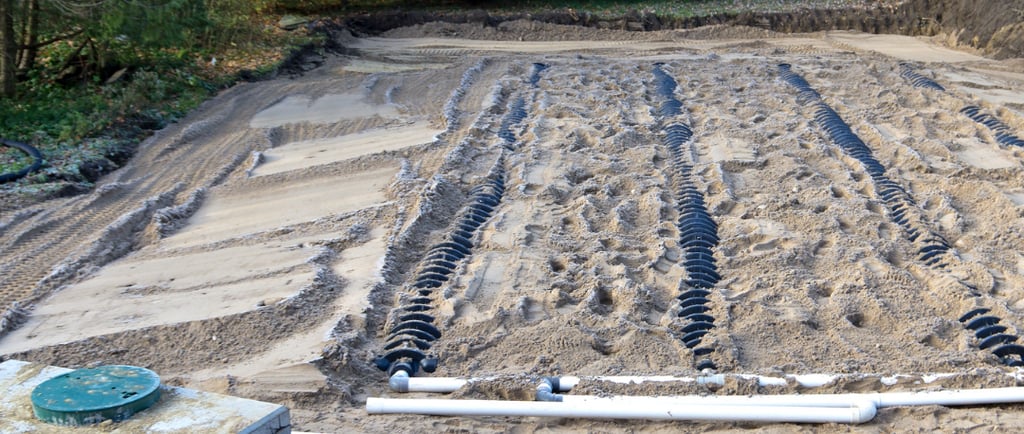 Septic Tank & Field: A septic system consists of two main components: the septic tank and the drain field. The septic tank is an underground container where household wastewater flows. Inside the tank, solid waste settles to the bottom, while liquid waste remains in the middle. Bacteria breaks down the waste, and the treated liquid exits the tank into the drain field. The drain field disperses the wastewater into the soil, where natural processes further purify it.
